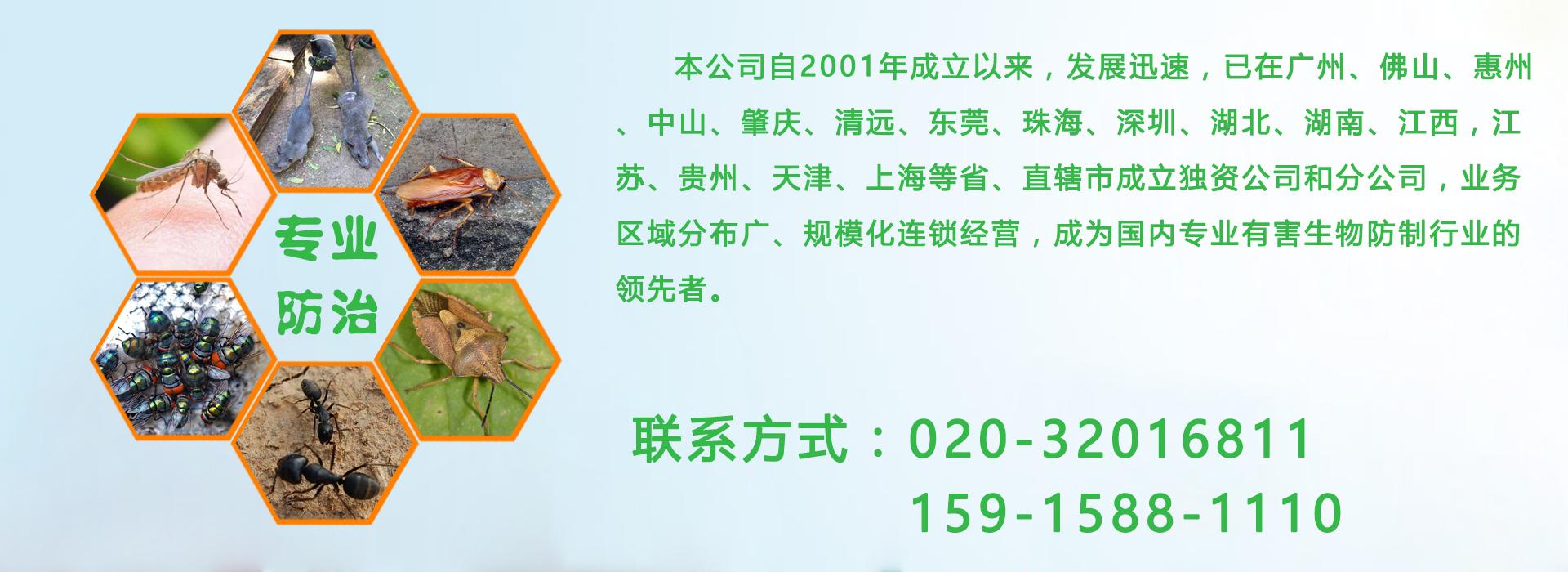 "億康"承接廣東除八害項目:鼠類、蟑螂、蚊子、蒼蠅、跳蚤、白蟻、臭蟲、螞蟻預防及治理,除甲醛及檢測、室內空氣檢測及治理等服務。